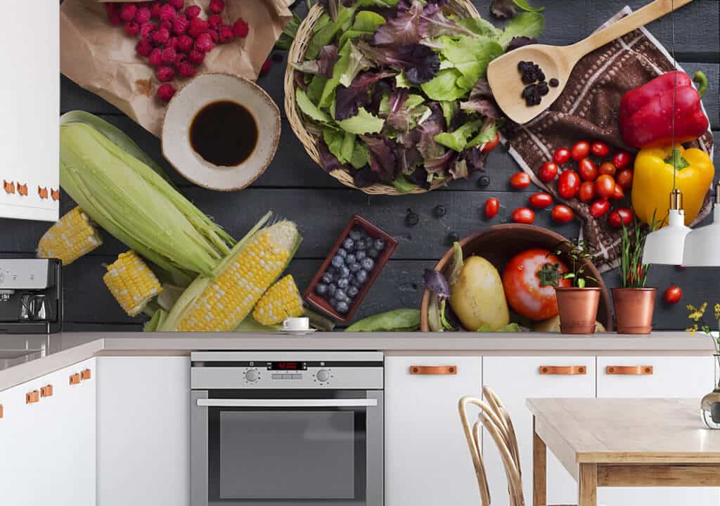 Sollte der Schwerpunkt auf gesunder Ernährung liegen, kann man zu einer Darstellung mit Obst und Gemüse greifen. Das Motiv regt den Appetit an, noch bevor das zubereitete Essen auf den Tisch kommt! Solche Muster finden Sie unter https://myredro.de/fototapeten/themen/essen/